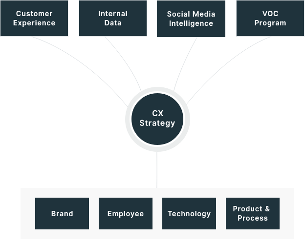 A CX Strategy is required to help define the direction of the CX program and how you will achieve your goals to improve the customer experience across all aspects of your business.